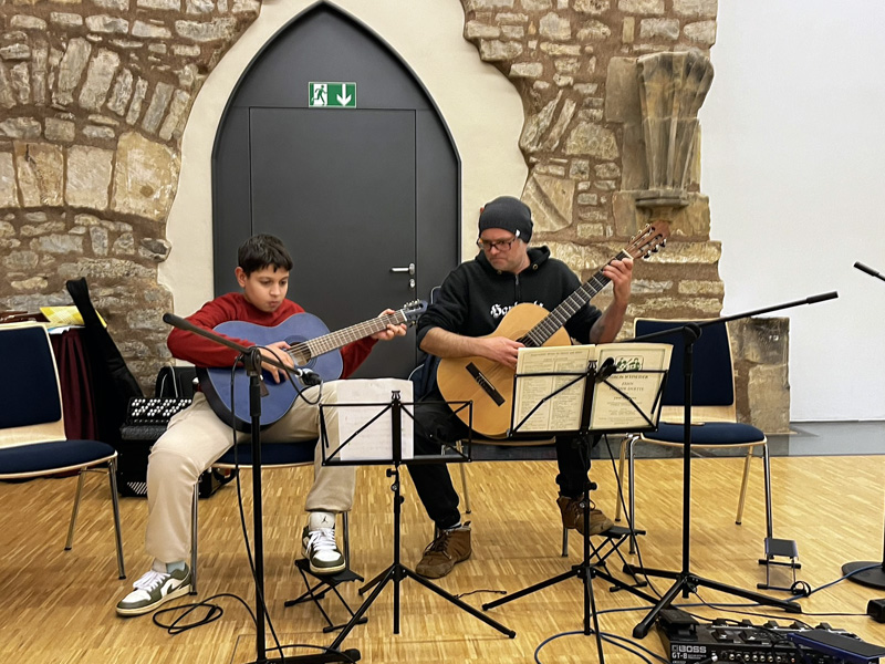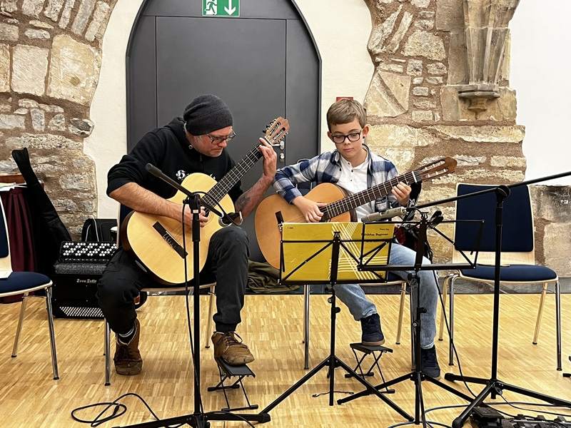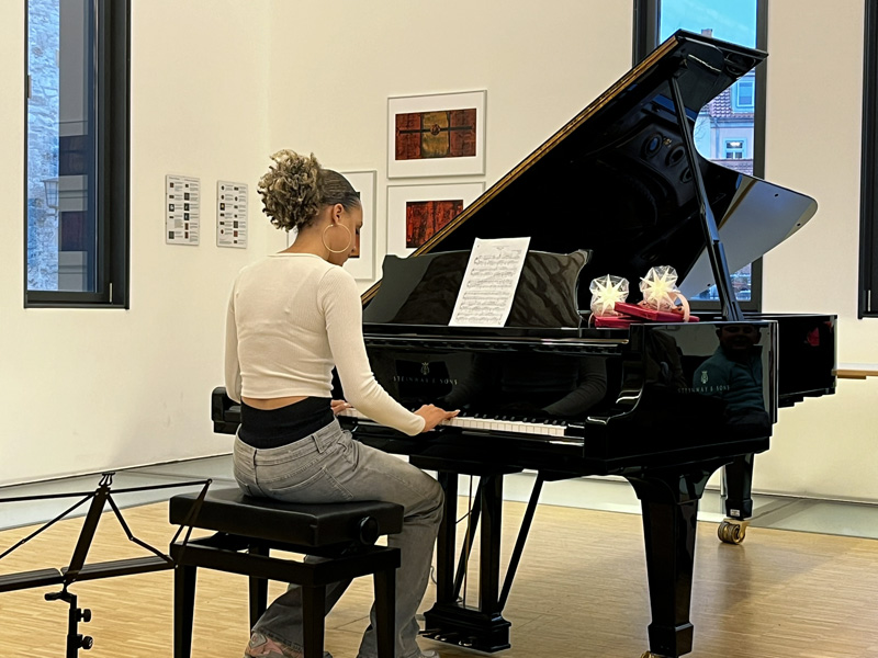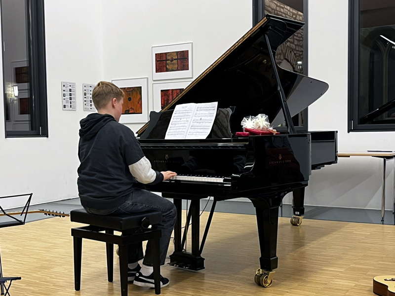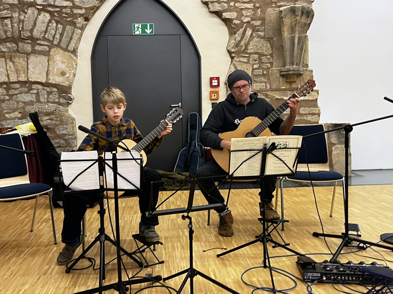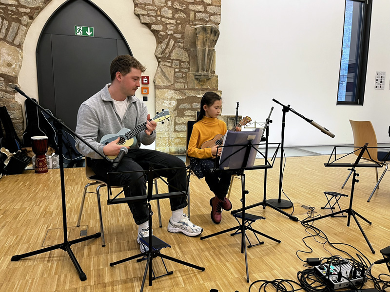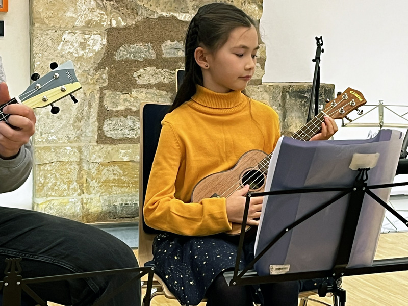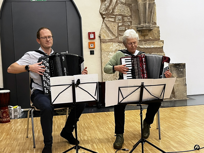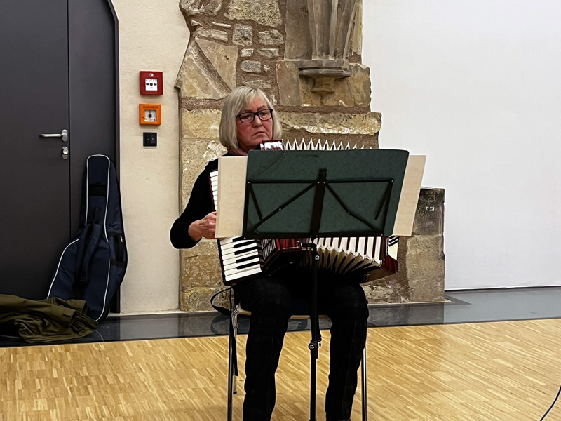 Es wurde viel gesungen, und wir konnten Instrumente wie Klavier, Akkordeon, Gitarre, E-Gitarre, Ukulele und Trommel hören.